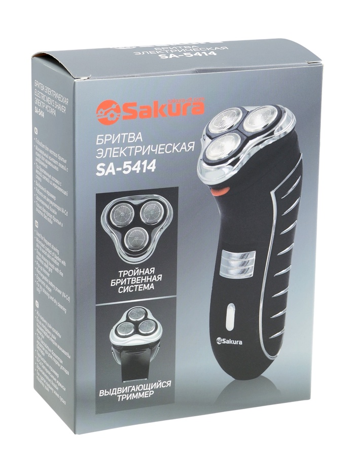 Электробритва Sakura SA-5414BK, АКБ, сеточная, 3 плавающие головки, триммер, чёрная — Характеристики