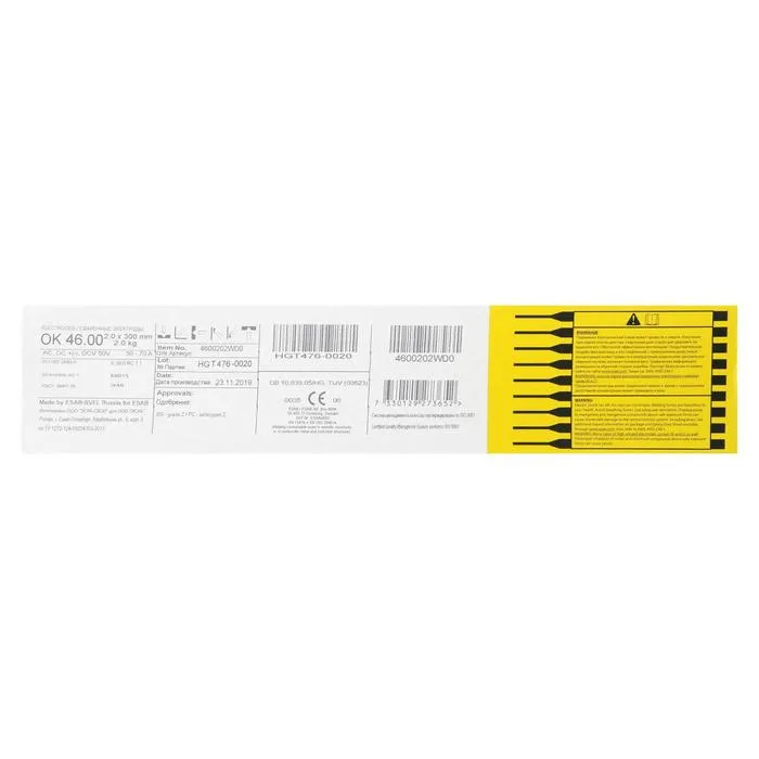 Электроды ESAB ОК 46, d=3 мм, 350 мм, 2.5 кг + ПОДАРОК — Характеристики
