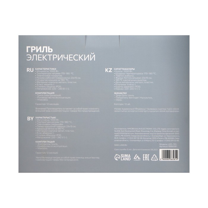 Электрический гриль Luazon LEG-701 - ваш профессиональный помощник в приготовлении стейков! С его помощью вы сможете порадовать себя различными вкусными блюдами: приготовьте овощи, форель или креветки на гриле и насладитесь их ярким вкусом. Температура нагрева достигает 180 °С - она оптимальна для различных продуктов, что делает гриль универсальным.