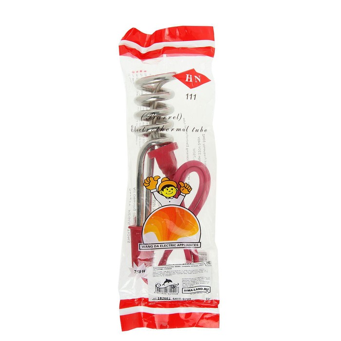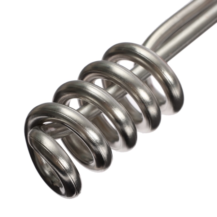 Нагревательный элемент длиной 13 см выполнен из нержавеющей стали с никелевым покрытием. Он нагреет воду в небольшой ёмкости, например, в стакане или кастрюле (материал емкости должен быть предназначен для нагрева воды с помощью погружного кипятильника).