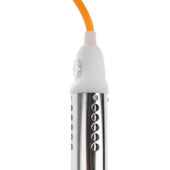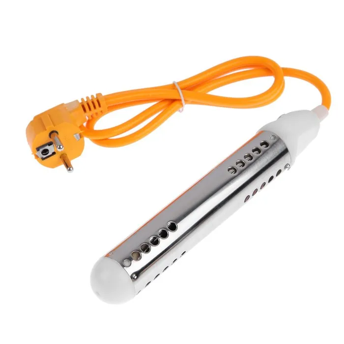 Нагревательный элемент длиной 14,5 см выполнен из нержавеющей стали с никелевым покрытием. Он нагреет воду в любой емкости, например, в стакане или тазике (материал емкости должен быть предназначен для нагрева воды с помощью погружного кипятильника). Высокая мощность устройства в 1200 Вт позволит быстро нагреть воду.