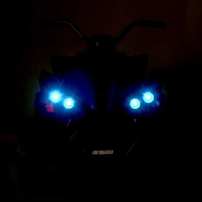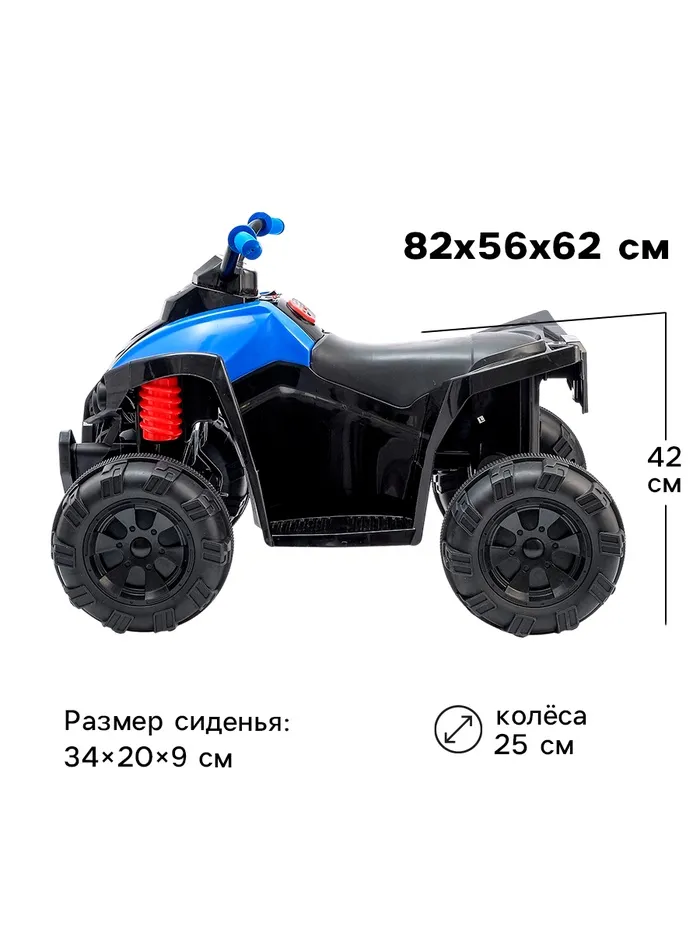 Покоряйте просторы на своём квадроцикле! Синий электромобиль-квадроцикл с брутальным дизайном – это игрушка, которая подарит вашему ребёнку незабываемые приключения.