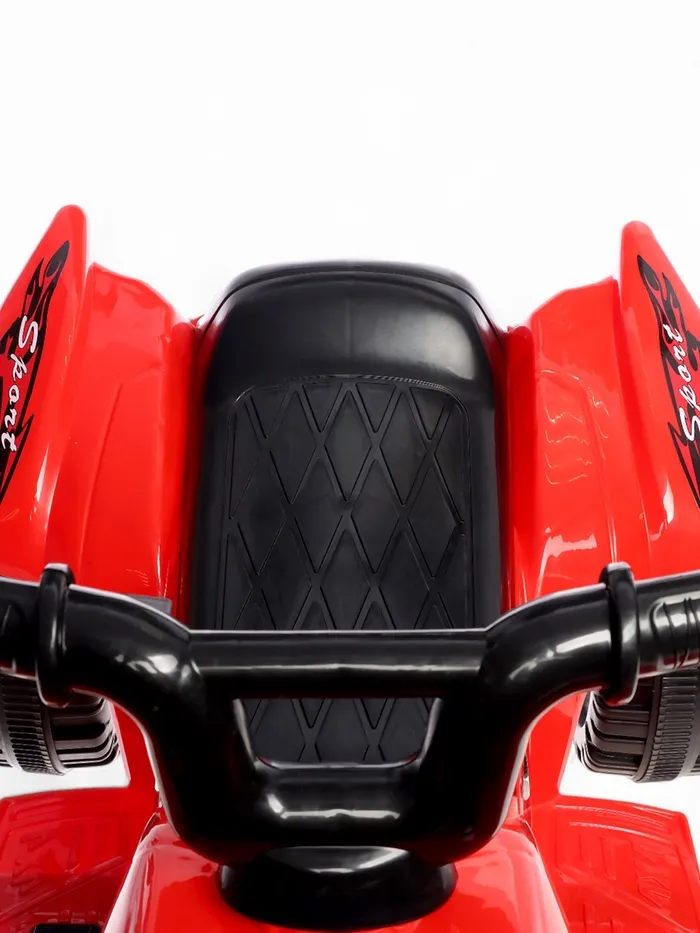 - Яркий дизайн и эффекты: красный цвет корпуса и световые эффекты делают этот квадроцикл заметным и привлекательным. Звуковые эффекты создают атмосферу настоящего внедорожника, добавляя реализма каждой поездке.