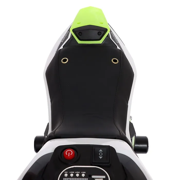 Электромобиль «Мотоцикл», 1 мотор, кожаное сидение, цвет бело-зелёный — Характеристики