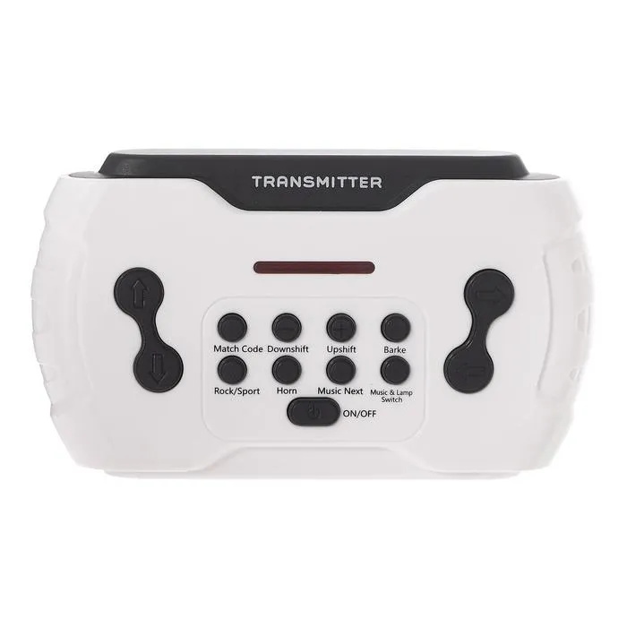 - Простое подключение пульта: для синхронизации пульта управления с машиной нужно выключить электромобиль, включить пульт, зажать кнопку Match Code и, не отпуская её, снова включить машину. После этого управление становится доступным. Пульт работает от 2 батареек типа AAA.