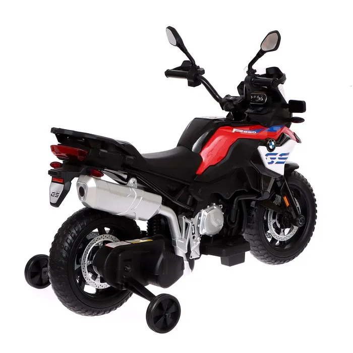 Лицензионный детский электромотоцикл BMW F850 GS выполнен в виде оригинального мотоцикла бренда и снабжён всем необходимым для увлекательных игр на улице. Игрушка оснащена двумя моторами мощностью 12 Вт и разгоняется до 3–6 км/ч. Отлично подойдёт ребёнку от 3 лет.