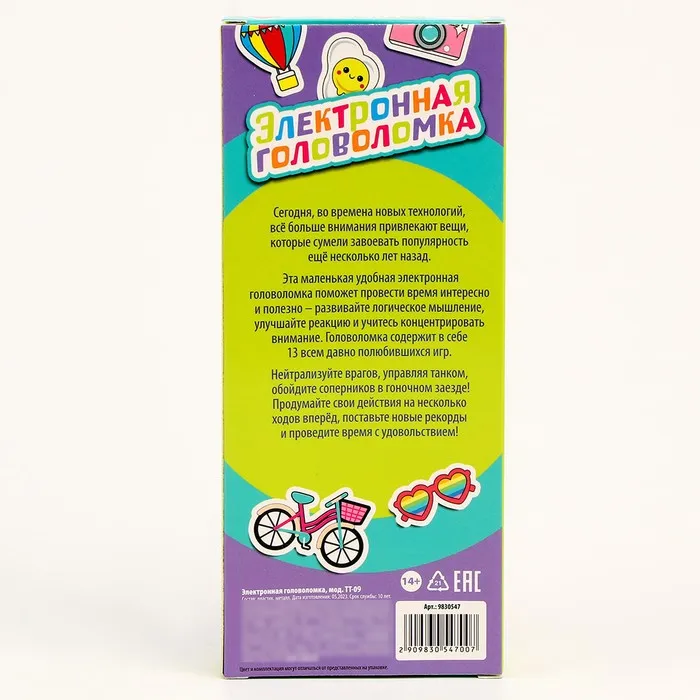 Классическая электронная игра в новом исполнении! Компактная электронная игра «Давай на скорость» с 13 встроенными играми — увлекательное развлечение для детей и взрослых. Развивает логику, ловкость и моторику, а также помогает весело провести время.