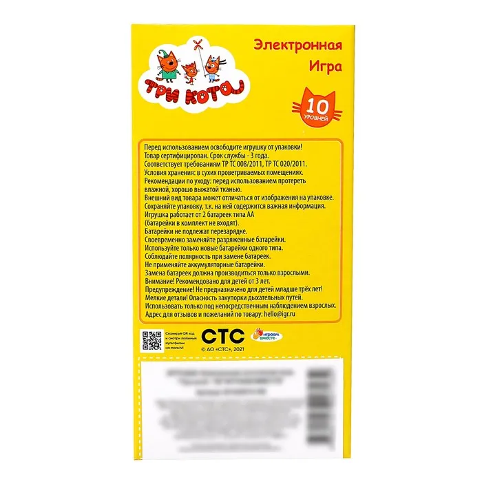 Электронная логическая игра «Три кота» ТМ «Играем вместе» станет прекрасным подарком для маленьких поклонников мультсериала про любознательных котят.
