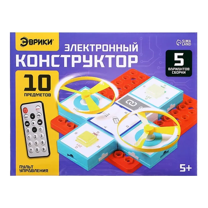 Электронный конструктор «Эврики» поможет ребёнку познакомиться с законами физики и электроники. Он легко собирается по инструкции, все электросхемы работают с помощью пульта управления. Пропеллеры вращаются в разные стороны, а лампы горят разными цветами, в зависимости от того, как их подключить.