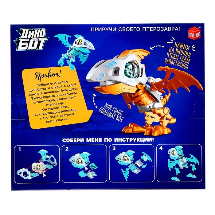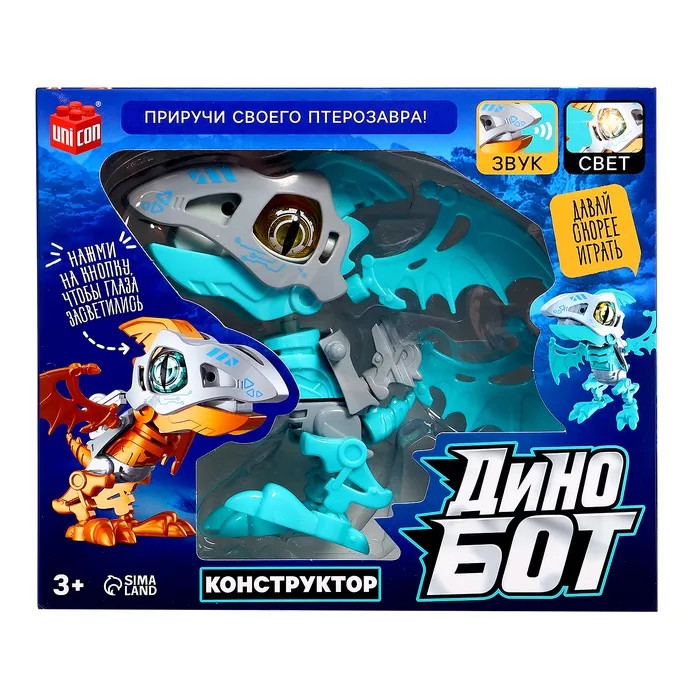 Электронный конструктор динозавр «Динобот», со звуком и подсветкой, на батарейках, цвет МИКС — Характеристики