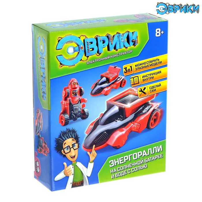Удивите вашего будущего учёного необычной игрушкой! Яркая высококачественная модель станет отличным подарком. «Энергоралли» поможет узнать много интересного, познакомит с современной механикой и электроникой. Из деталей конструктора можно собрать 3 разных варианта, а для его работы не нужны батарейки!