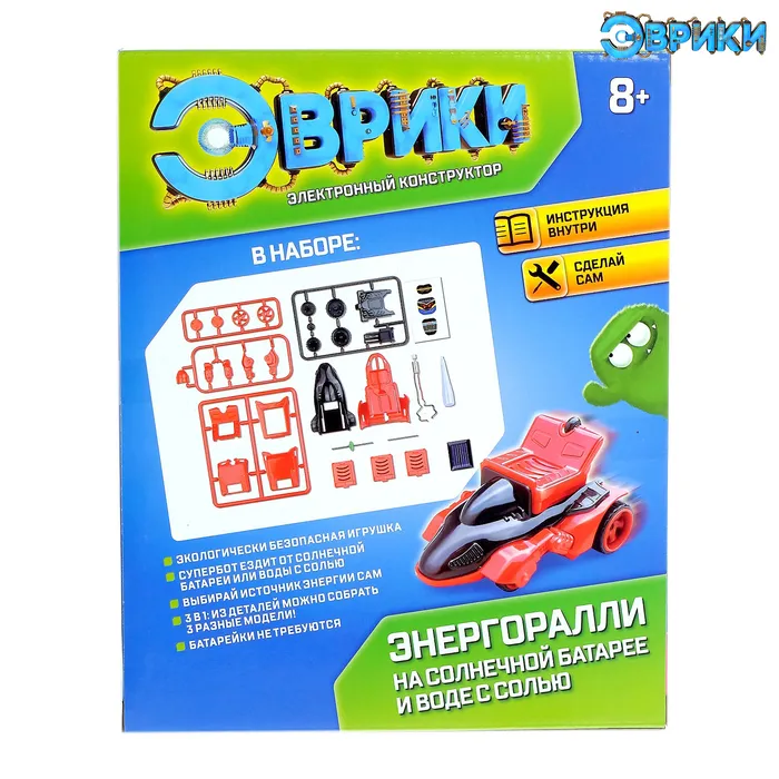 «Энергоралли 3 в 1» работает при помощи солнечной энергии или… обычной воды с солью! Это отличный способ познакомить ребёнка с удивительными и экологически чистыми источниками электричества. Просто поместите игрушку под яркий солнечный свет или капните солёной водой на элемент питания и наблюдайте за движением!