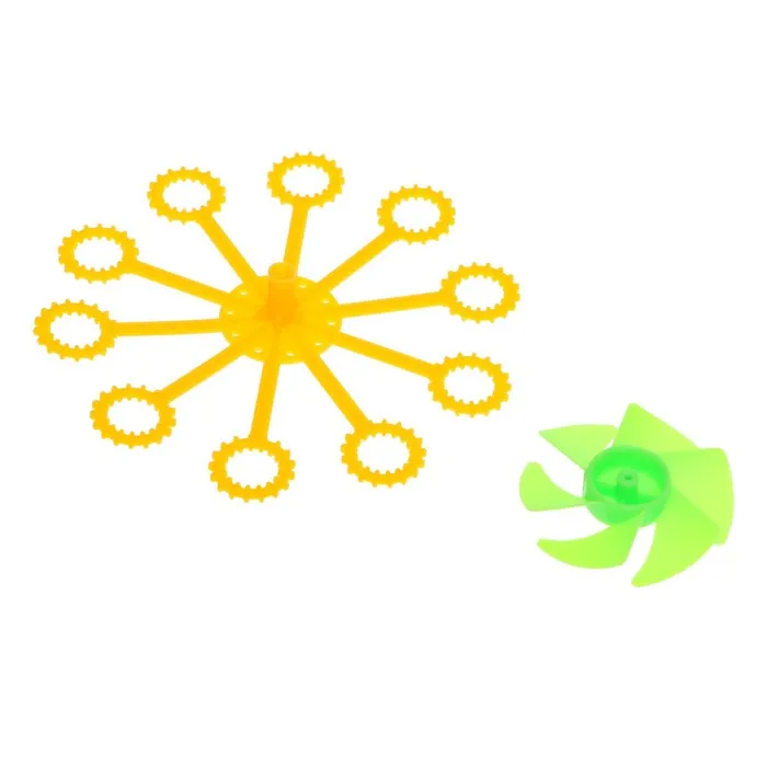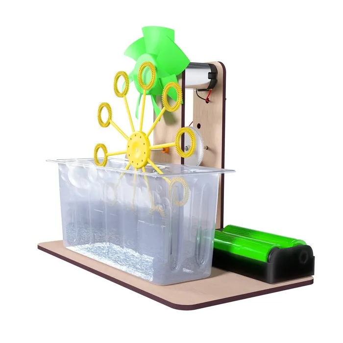 - Вентилятор и колесо из палочек для мыльных пузырей крепятся к электромоторам.