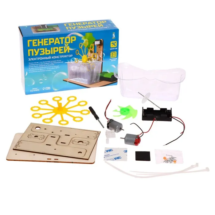 Электронный конструктор «Генератор пузырей» — новый уровень в пускании мыльных пузырей. Соберите установку, которая будет сама выдувать мыльные пузыри. Вам останется лишь успевать доливать жидкость!