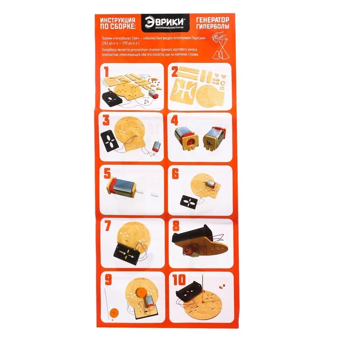 Собрав свою собственную установку с гиперболическими отверстиями, ребёнок узнает ответ на вопросы: «Как прямые, несгибающиеся части конструктора проходят через закруглённые отверстия?», «И что такое гипербола?»