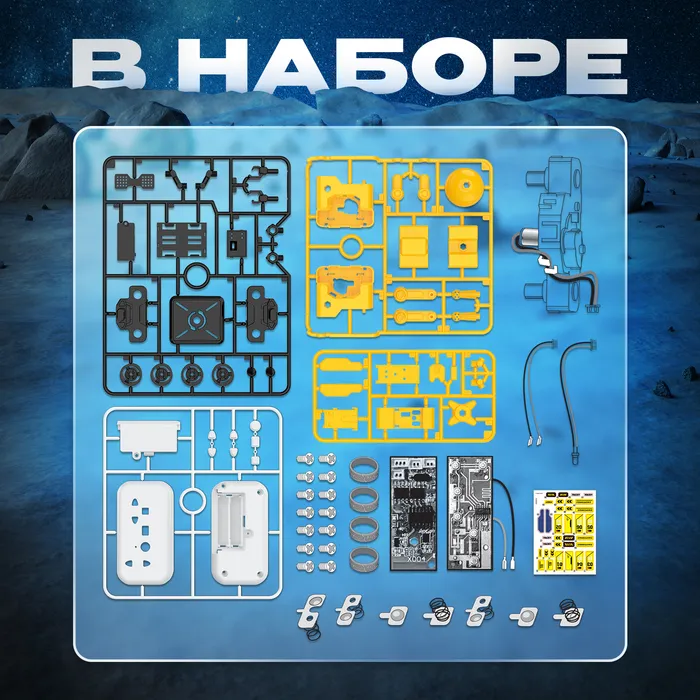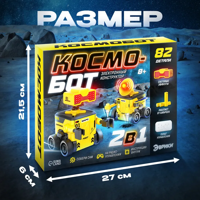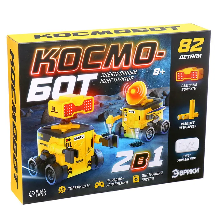 - Управляйте Космоботом с помощью пульта радиоуправления.