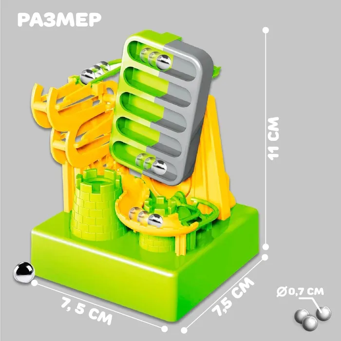 Множество дорожек, туннелей в виде мостиков завладеют вниманием детей и взрослых. Чадо с удовольствием будет запускать металлические шарики, наблюдая законы физики в действии.