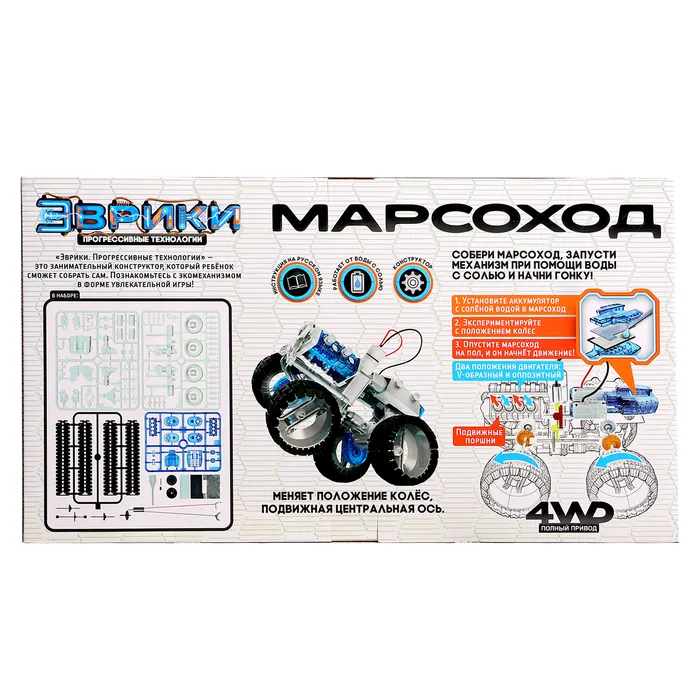 Электронный конструктор «Марсоход», 4WD, работает от воды с солью — Характеристики