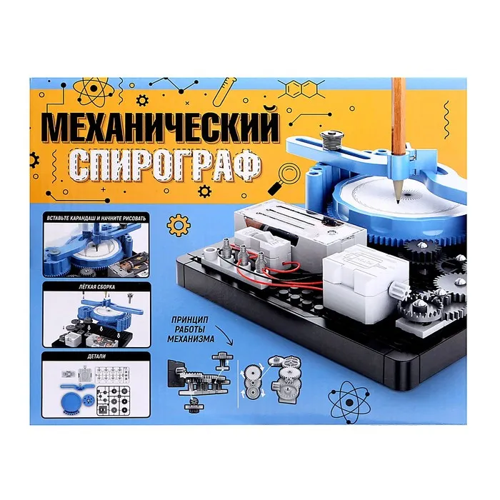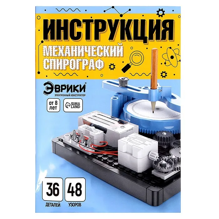С электронным конструктором торговой марки «Эврики» ребёнок соберёт электрическое устройство «Механический спирограф» самостоятельно, без помощи взрослых! Этот прибор позволяет создавать удивительные узоры и рисунки. Вся электрическая цепь проста и понятна. Легко собирается с помощью проводов и шестерёнок.