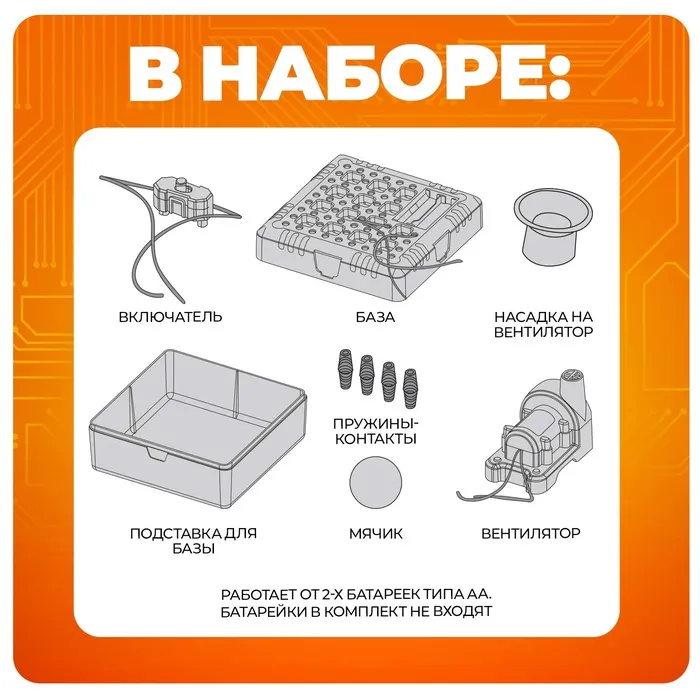 В комплекте есть всё необходимое , чтобы мощным потоком воздуха заставить мячик летать:
