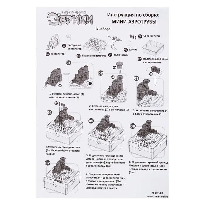 Установите вентилятор в базу с отверстиями. Вставьте насадку вентилятора в вентилятор. Соедините провода между собой так, как показано в инструкции. Нажмите на кнопку включателя, и шар поднимется в воздух!