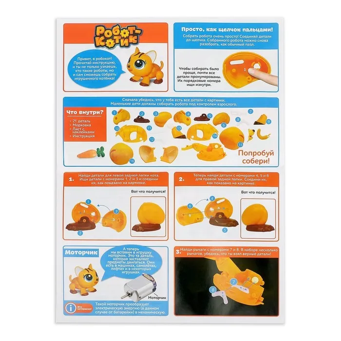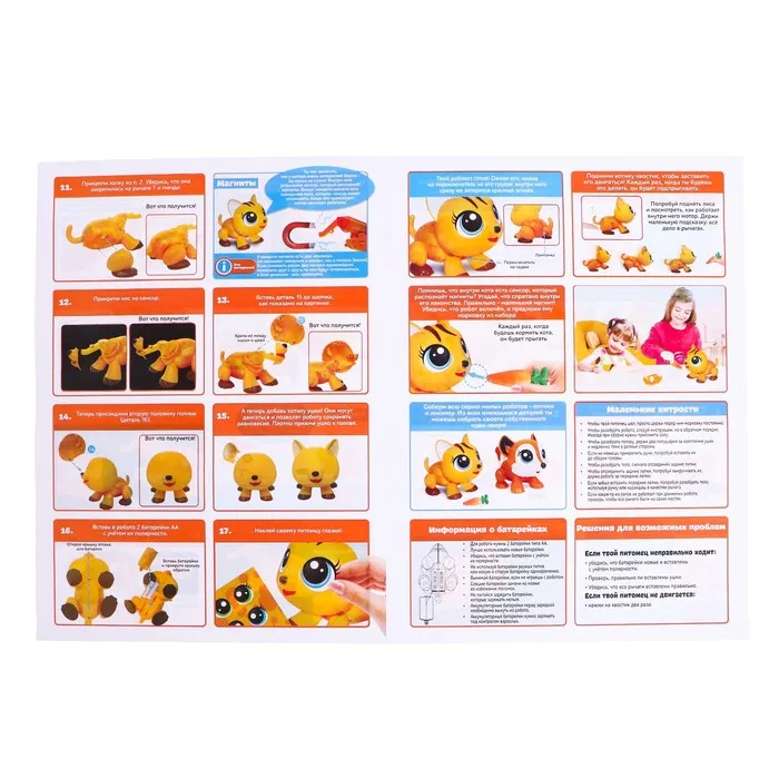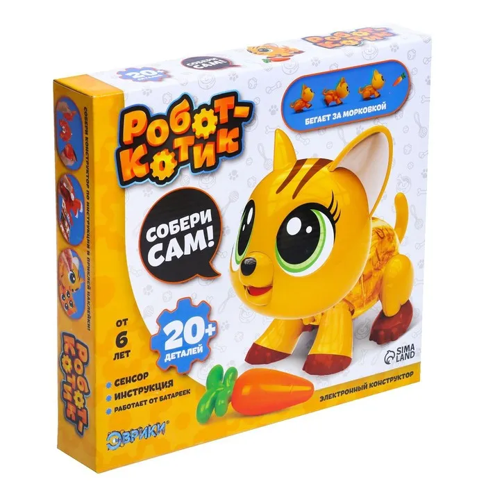 Электронный конструктор «Робот-котик», интерактивный, сенсорный, на батарейках, 20 деталей — Характеристики