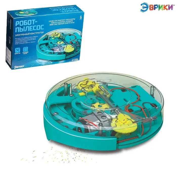 Электронный конструктор «Робот-пылесос» — это увлекательный набор для юных изобретателей и любителей техники. С его помощью можно собрать функциональную модель робота, способного передвигаться и выполнять задачи по уборке. Конструктор станет отличным подарком для ребёнка, интересующегося электроникой, программированием и механикой.