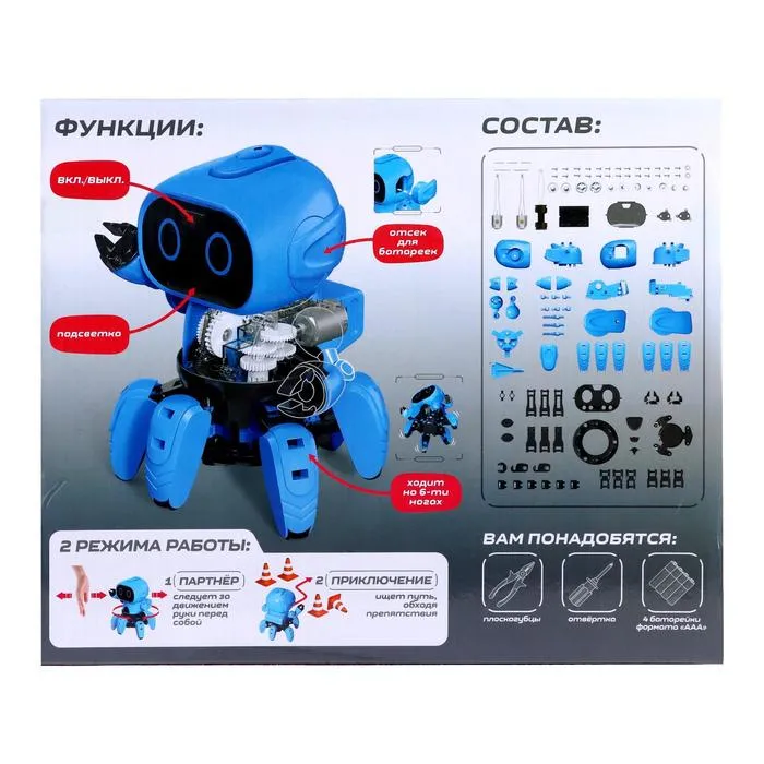 Робот-конструктор «Спок» создан специально для маленького любителя робототехники. Ребёнок самостоятельно соберёт устройство с интеллектуальной системой управления и поиграет им.
