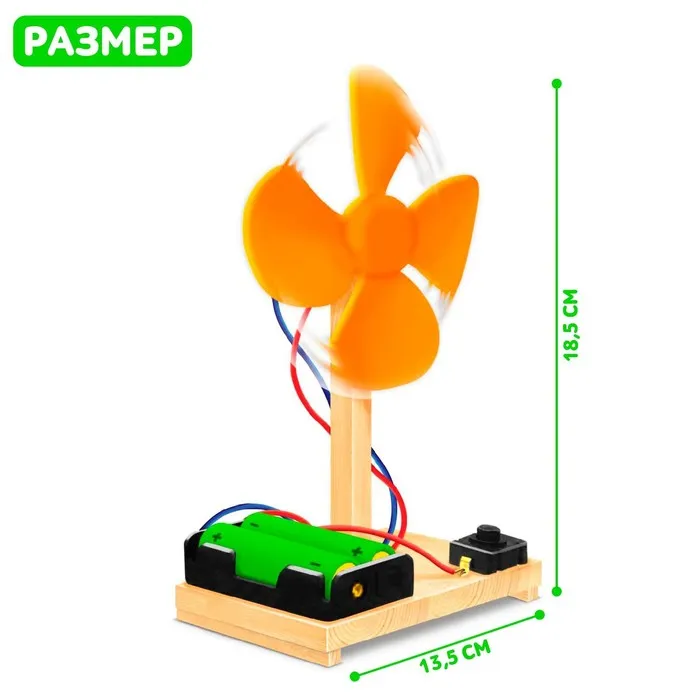 Электронный конструктор «Вентилятор», деревянный, работает от батареек — Характеристики