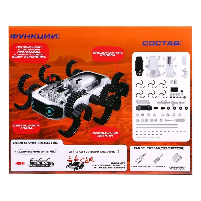 Сборка модели поможет в развитии мелкой моторики, логики, мышления и воображения. В процессе увлекательной игры маленький исследователь познакомится с робототехникой.