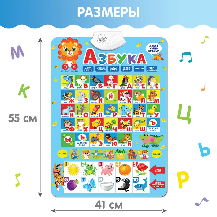 Электронный обучающий плакат «Азбука», работает от батареек — Характеристики
