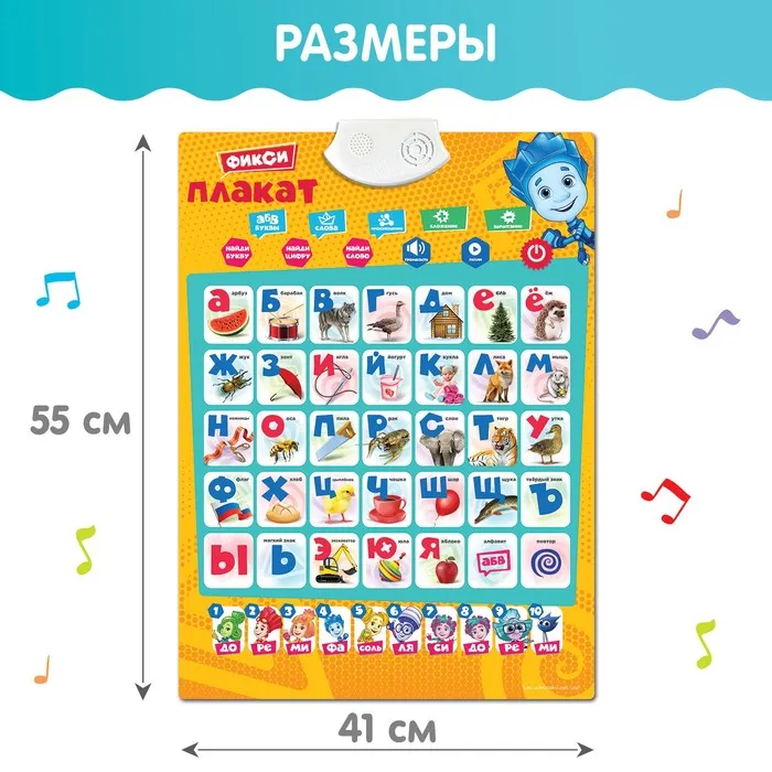 Учим буквы с любимыми героями! Интерактивный «Фикси плакат» превращает изучение алфавита в весёлую игру. Яркий плакат с сенсорными кнопками помогает детям запоминать буквы, цифры, цвета и даже разгадывать загадки — просто нажимай и слушай!