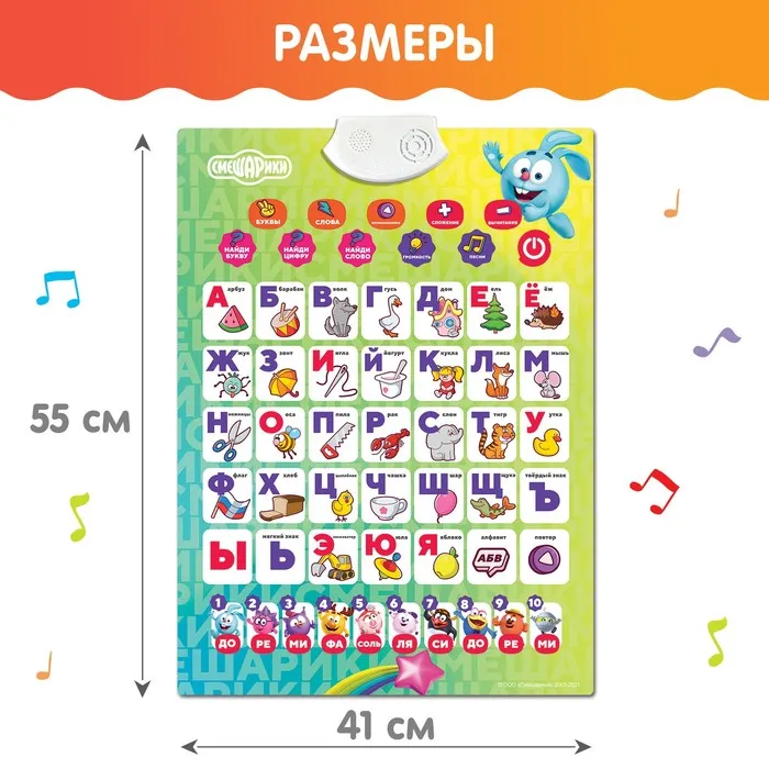 Учим буквы с любимыми героями! Интерактивный плакат «Умная азбука» со Смешариками превращает изучение алфавита в весёлую игру. Яркий плакат с сенсорными кнопками помогает детям запоминать буквы, цифры, слова — просто нажимай и слушай!