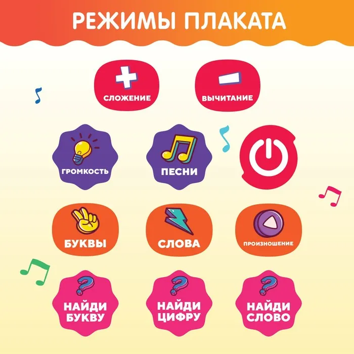 - Буквы, цифры, песни и развивающие игры. Плакат растёт вместе с ребёнком — от первых слов до подготовки к школе.