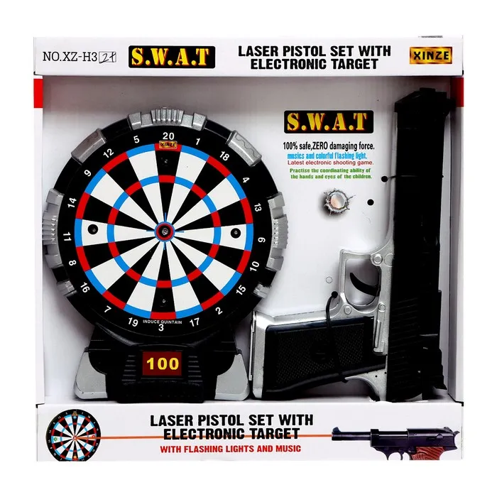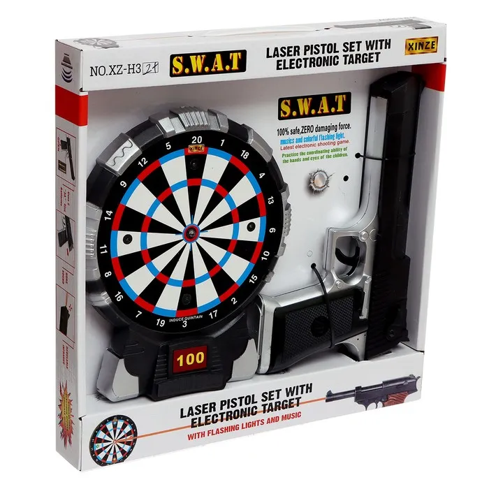 - Яркие эффекты: игра становится ещё увлекательнее благодаря световым и звуковым эффектам. При каждом выстреле раздаётся имитация звука, а при попадании в цель – играет мелодия. Световые сигналы делают процесс игры зрелищным и захватывающим.