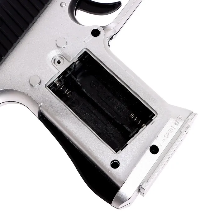 - Прочный и удобный: пистолет сделан из качественного пластика, который выдерживает активные игры. Его размер идеально подходит для детской руки. Для работы нужны 6 батареек типа AA (LR6), которые обеспечивают долгую и бесперебойную игру.