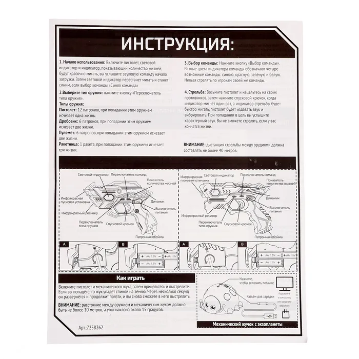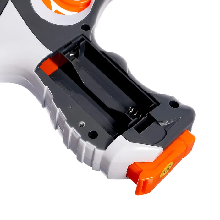 Бластер работает от 3 батареек типа AA, мишень работает от аккумулятора.