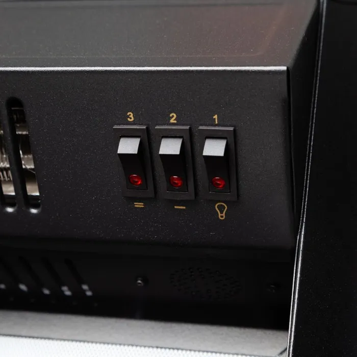 • Удобство использования: длина шнура составляет 1,8 м, что позволяет разместить очаг в любом удобном месте, а отсутствие громоздких элементов управления делает эксплуатацию максимально простой и комфортной.