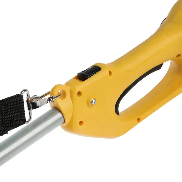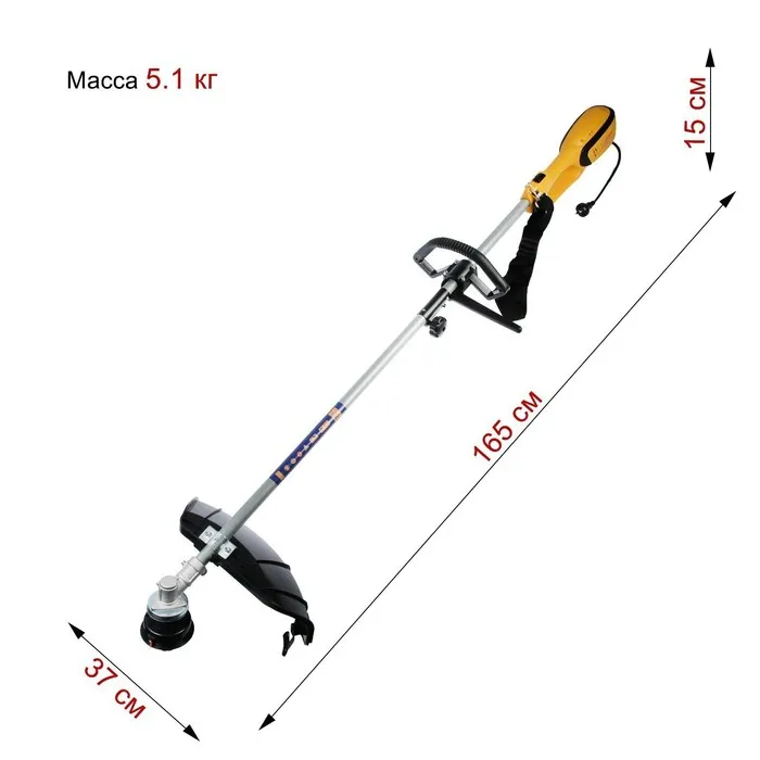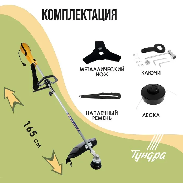 В комплект входят леска и металлический нож, которые справятся с мягкой труднодоступной и высокой жёсткой травой.