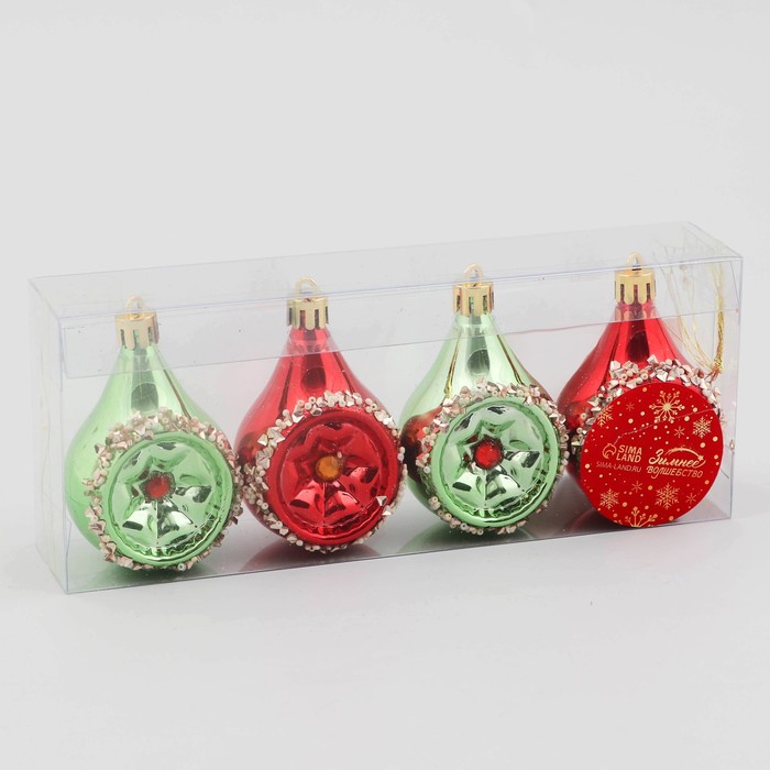 Елочная игрушка "Фонарик Сказка" (набор 4 шт) 5х8 см, зелёный красный — Характеристики
