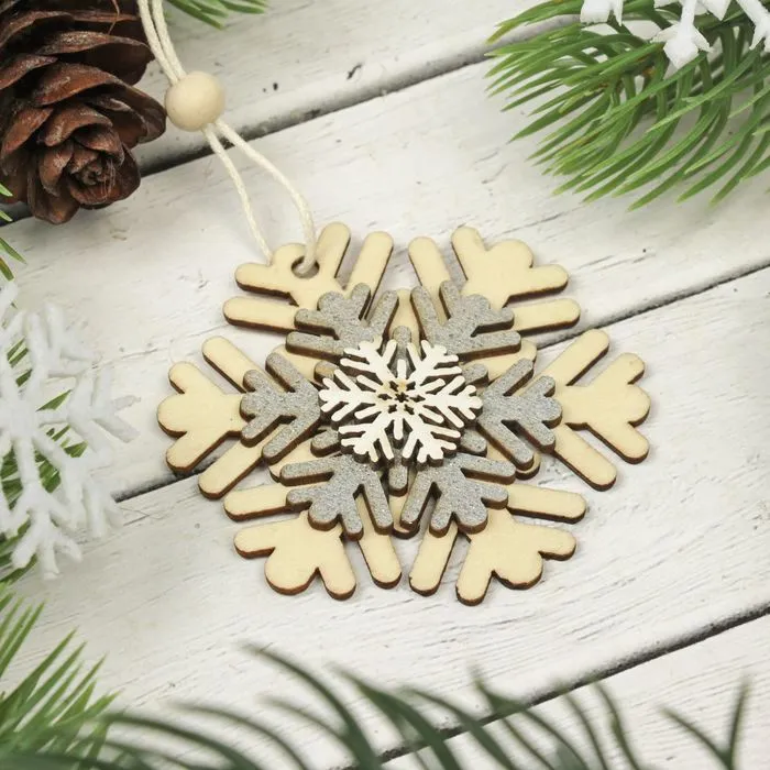 Новогодняя подвеска «Новогодняя снежинка» — это стильное и уютное украшение для вашего дома. Подвеска выполнена из натурального дерева, что делает её прочной и долговечной. Новогодняя форма подвески создаст праздничную атмосферу и станет отличным акцентом в вашем декоре.