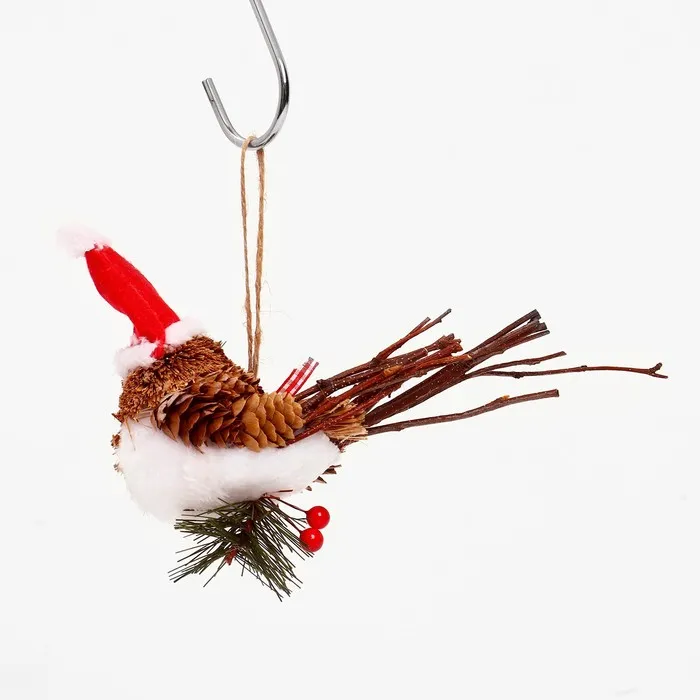 Елочная игрушка «Птичка в новогоднем колпаке», 15×6×13 см — Характеристики