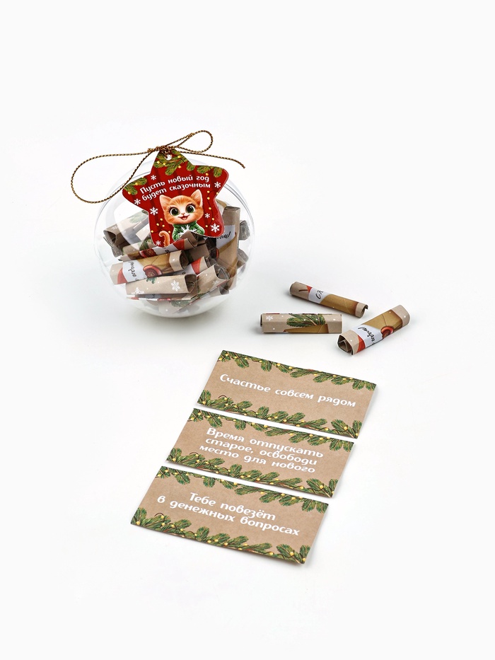 Елочная игрушка со свитками «Новогодний котик», 30 свитков — Характеристики