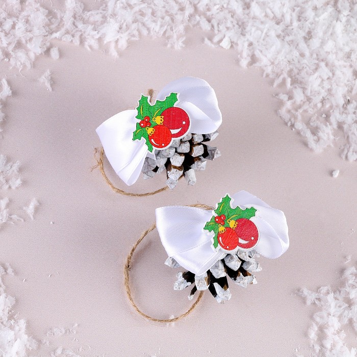 Новогодний набор «Шишка на ёлку» — стильный декор для ёлки, который добавит уют и атмосферу праздника. В набор входят два украшения в виде шишек с белыми бантиками и декором. Все элементы выполнены из натурального дерева и качественных материалов, поэтому абсолютно безопасны для использования в доме.