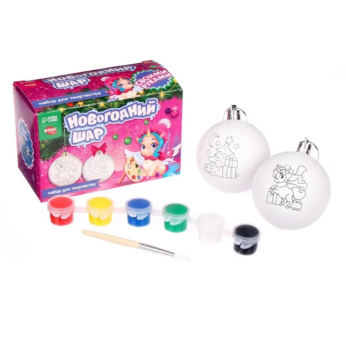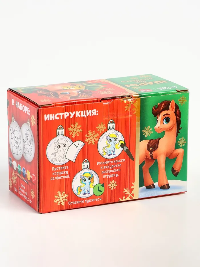 Елочные шары под раскраску «Лошадки» + краски, 2 шт., набор для творчества — Характеристики