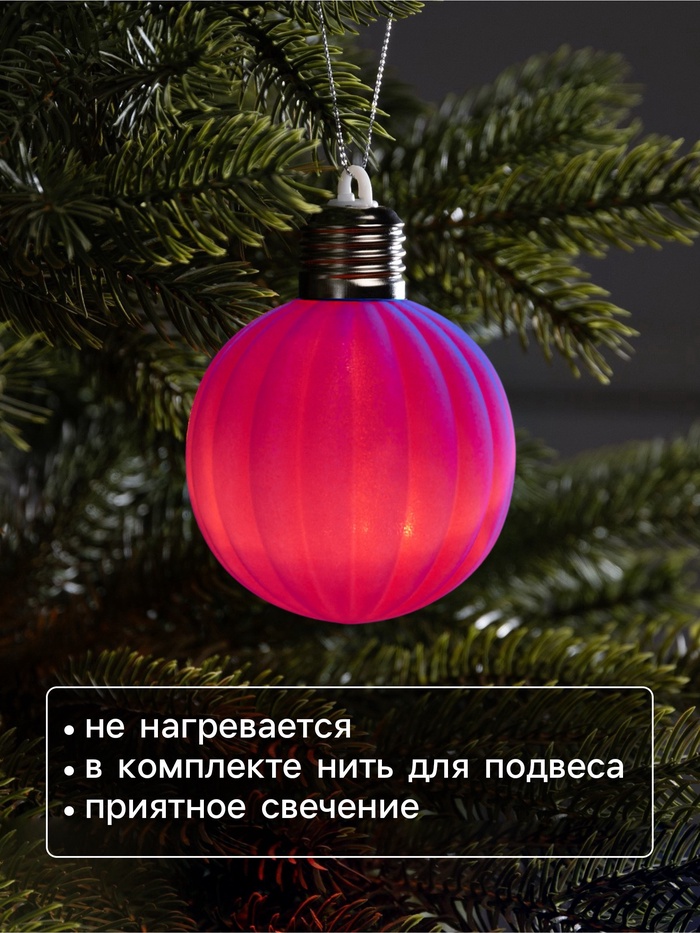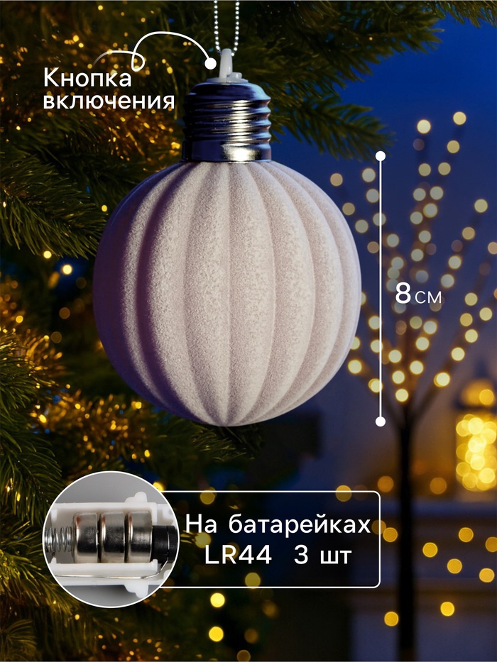 Елочный шар «Малиновый бархат» 8 см, 1 LED, от батареек LR44×3, свечение тёплое белое — Характеристики