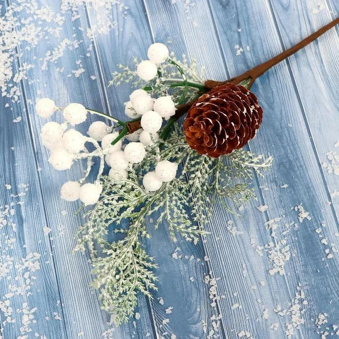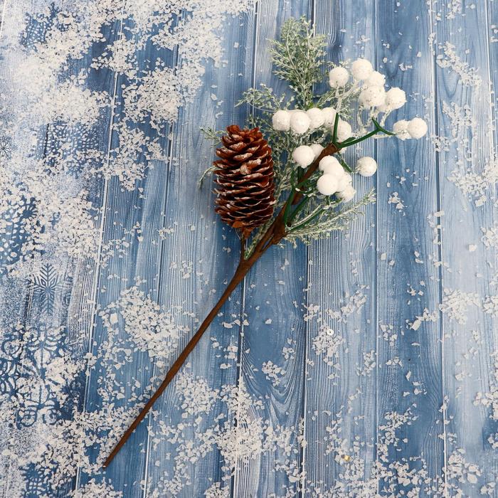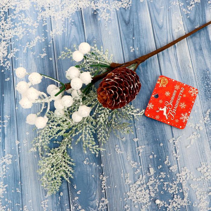 Еловая ветка декоративная «Зимнее волшебство. Чудо», пластик, белые ягоды, шишка, 24 см — Характеристики