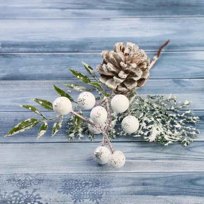 Еловая ветка декоративная «Зимнее волшебство. Грёзы», 16 см — Характеристики