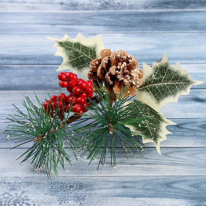 Эта ветка делает любое помещение частью вашей личной истории о чуде и подарках. Зелёные тона и яркие красные акценты работают вместе, чтобы передать дух Нового года и предпраздничное ожидание. Используйте её как самостоятельный элемент или как часть общего декора — одинаково хорошо усиливает атмосферу торжества и доброжелательность дома.