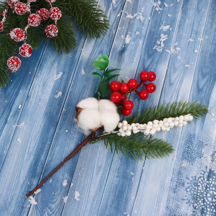Эта ветка добавляет ёлке и интерьеру ощущение свежего морозного воздуха и домашнего уюта. Красные тона и фактурные вставки работают вместе, чтобы сделать ваш дом частью личной зимней истории. Используйте её как основной элемент или фоновое дополнение — одинаково хорошо усиливает дух торжества и доброжелательность дома.